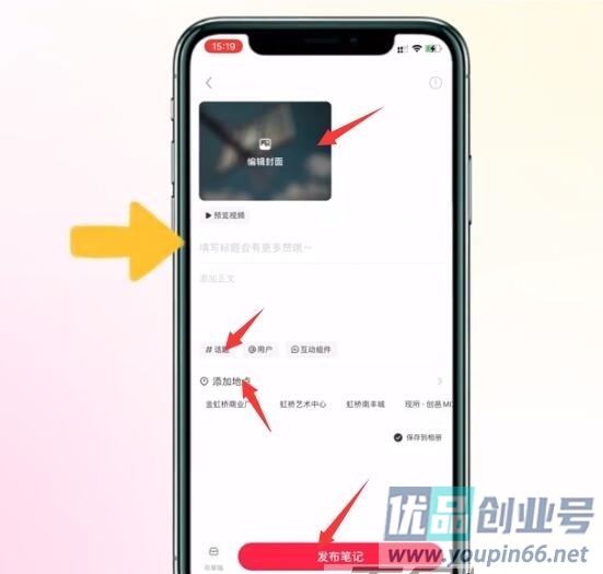 2、然后添加封面、标题和正文;然后不要忘了添加话题,这样我们的比较就容易被更多的人搜到。都编辑好过后我们就点击下方的“发布笔记”,这样就基本完成了。